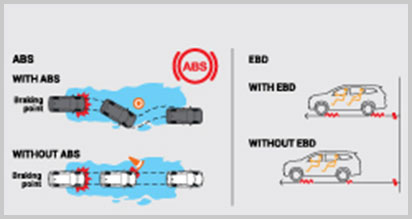 Anti-lock Braking System (ABS) with Electronic Brake Distribution (EBD) and Brake Assist (BA)